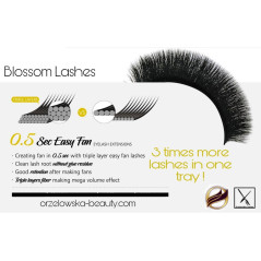 Blossom eyelashes are a brand created by Monika Orzelowska, their manufacturing name is Easy Fan Flower Lashes. These are produced from 2020 and are very helpful in making the volume fans for beginners and intermediate-advanced.